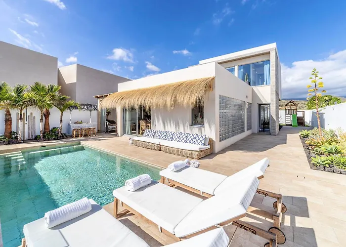 Situada a 4 km de la Playa de La Tejita, Ixchel Beach House By Sunkeyrents El Médano, una villa frente a la playa, invita a los huéspedes a relajarse en una terraza.